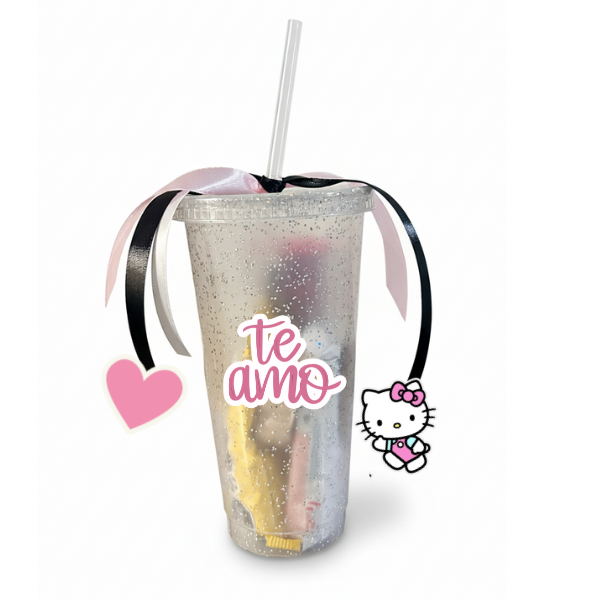 Vaso decorado y personalizado con dulces