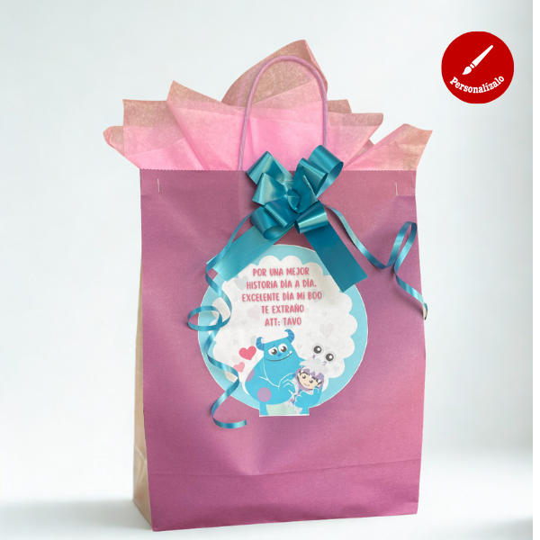 Bolsita color a elegir decorada y personalizada con frase y moño