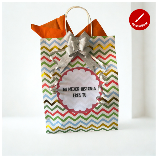 Bolsita color a elegir decorada y personalizada con frase y moño
