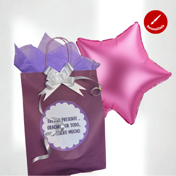 Bolsita color a elegir decorada y personalizada con frase y moño